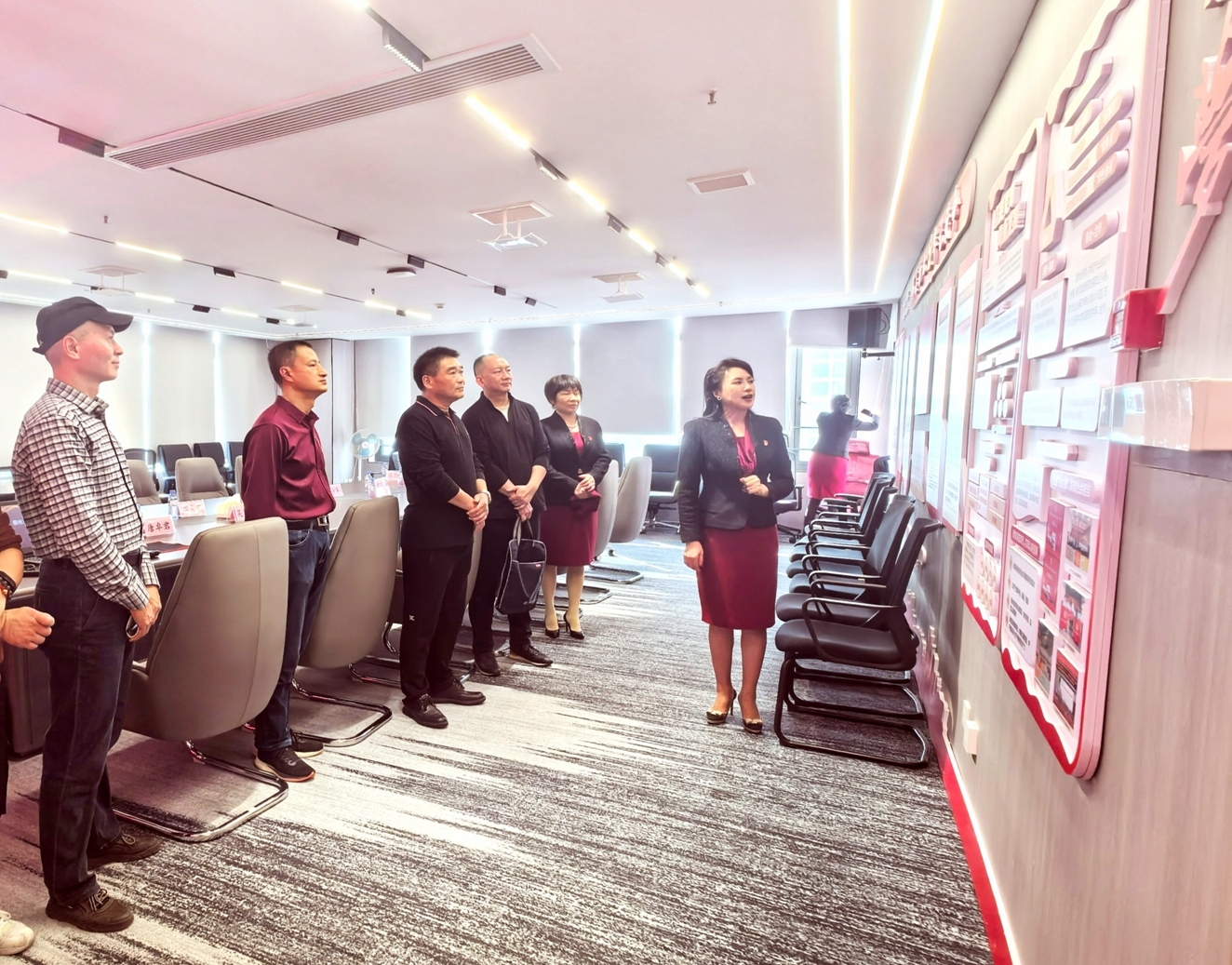 活动伊始,柳州市社会保险事业管理中心一行在商会党支部书记的陪同下,参观了女企业家商会的党建阵地与文化建设,认真聆听了协会在团结引领女性企业家、服务地方经济、聚智集才、资源共享、履行社会责任等方面的卓越成就与党建经验,深受启发。