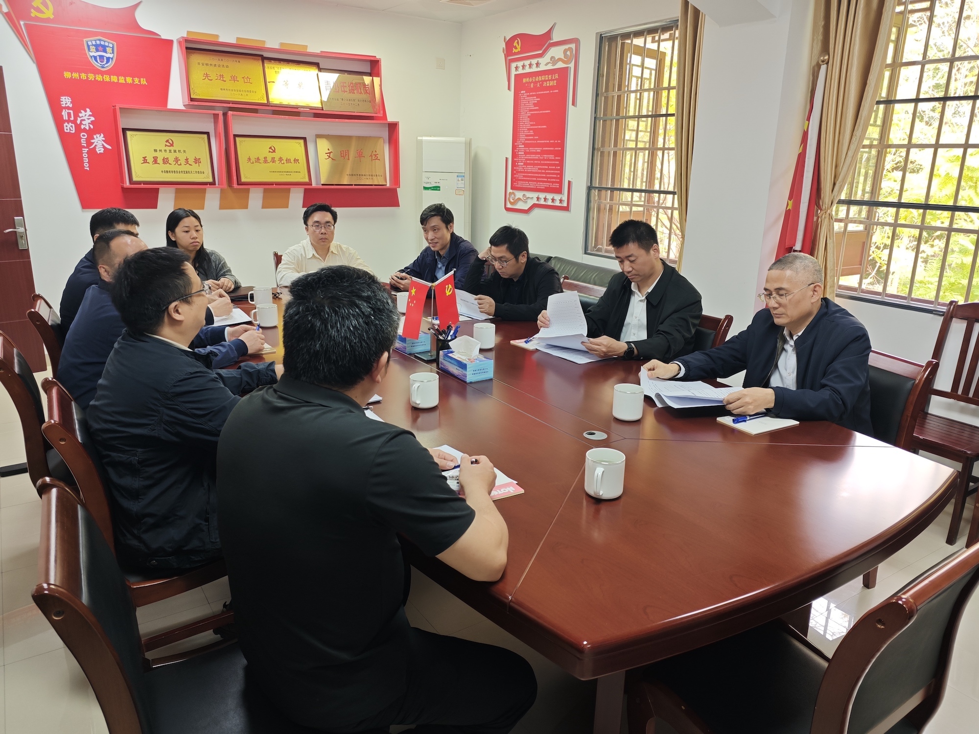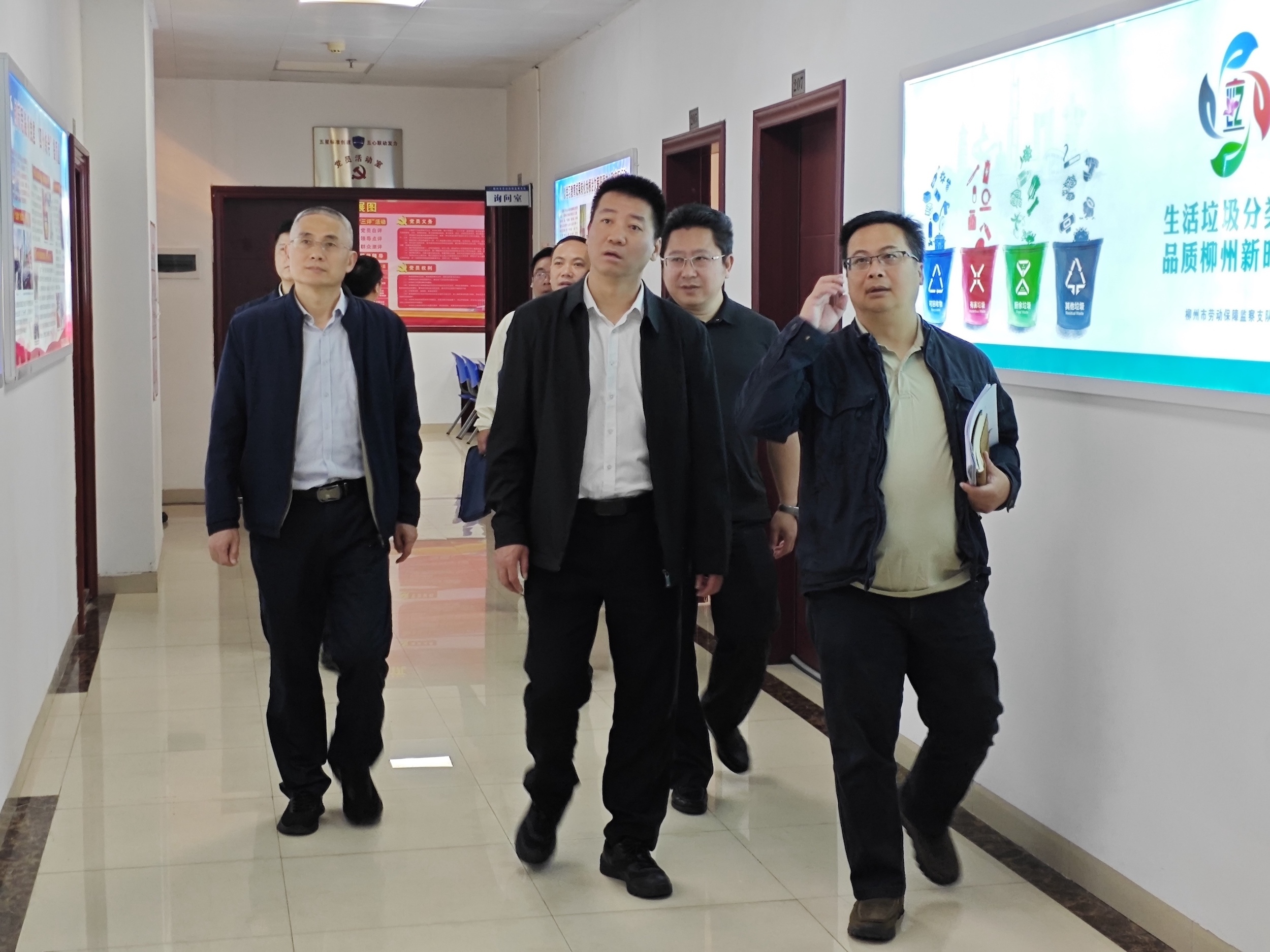 近日,柳州市人力资源和社会保障局党组书记、局长李睿,党组成员、副局长余茂建率队前往市劳动保障维权指挥中心指导工作。