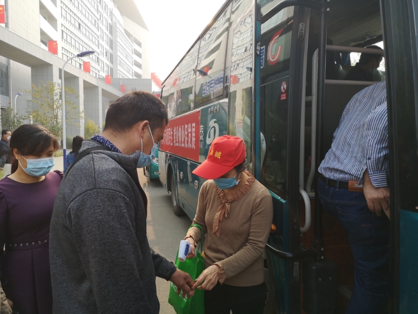 为保障这些外出务工人员安全有序出行,柳城县人社局牵头组织相关单位,积极结合疫情防控网格化管理和返乡人员日监测工作机制,制定科学合理的出行方案,建立了返乡务工人员实名制信息和返岗复工人员出行需求台账,紧密联系各乡镇、交通、防疫部门,对集中出行人员实施“分组编队、准备物资、行前提醒、出发签到、途中衔接、抵达对接”。为每位外出务工人员发放方便面、面包、饮用水和口罩等物资,为他们出行提供生活保障。