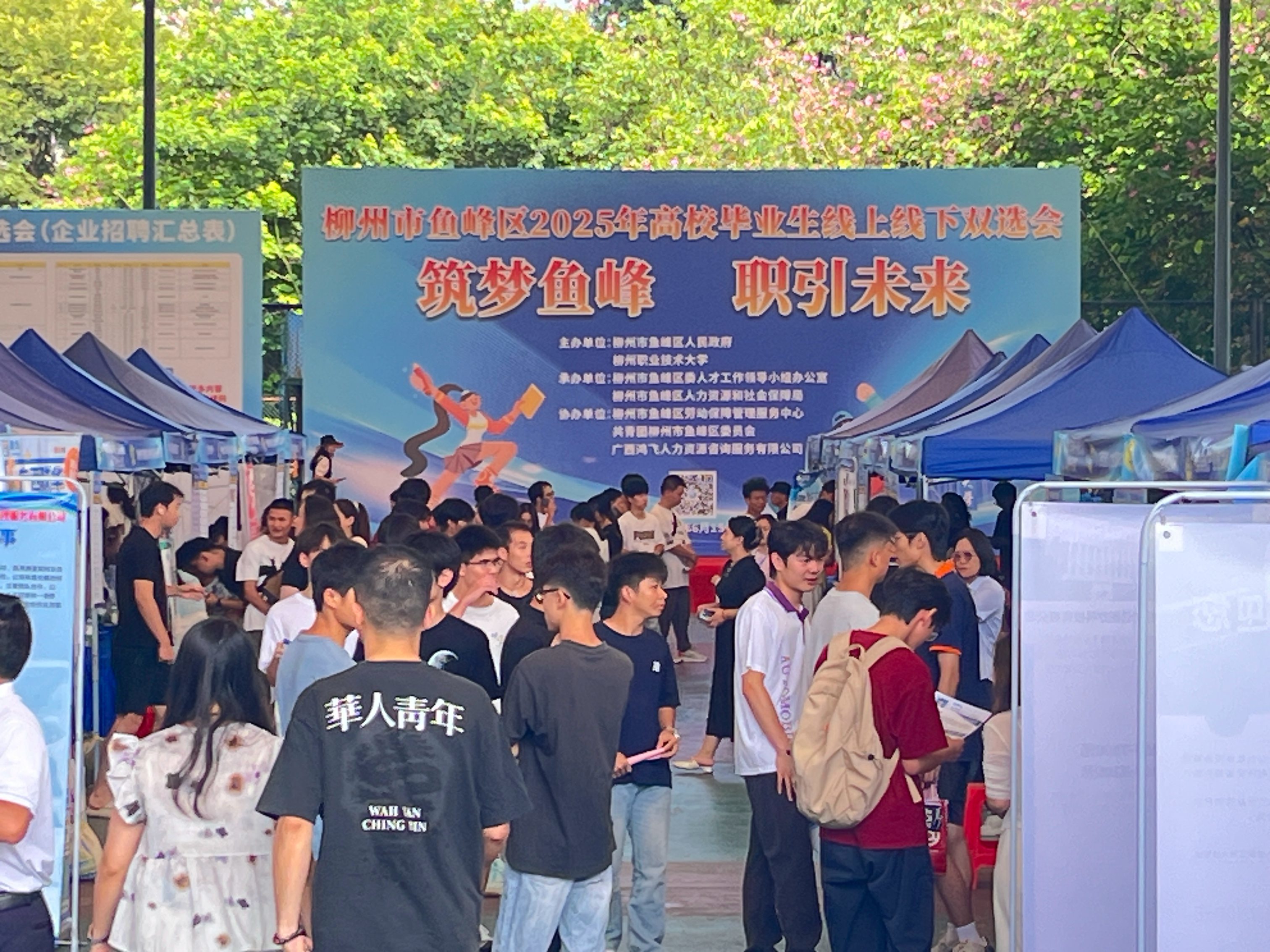 6月15日,“筑梦鱼峰·职引未来”柳州市鱼峰区2025年高校毕业生线上线下双选会在柳州职业技术大学官塘校区拉开帷幕。本次招聘会汇聚102家用人单位、提供5736个就业岗位,以“线下招聘+线上直播”双线模式为高校毕业生与企业搭建起精准对接的桥梁。现场吸引1000余人入场求职应聘,线上超2.3万人次通过“鱼峰就业”抖音直播间云端互动,主播围绕岗位介绍与求职技巧开展分享并实时答疑,为未能亲临现场的青年群体打开了“云端就业通道”。