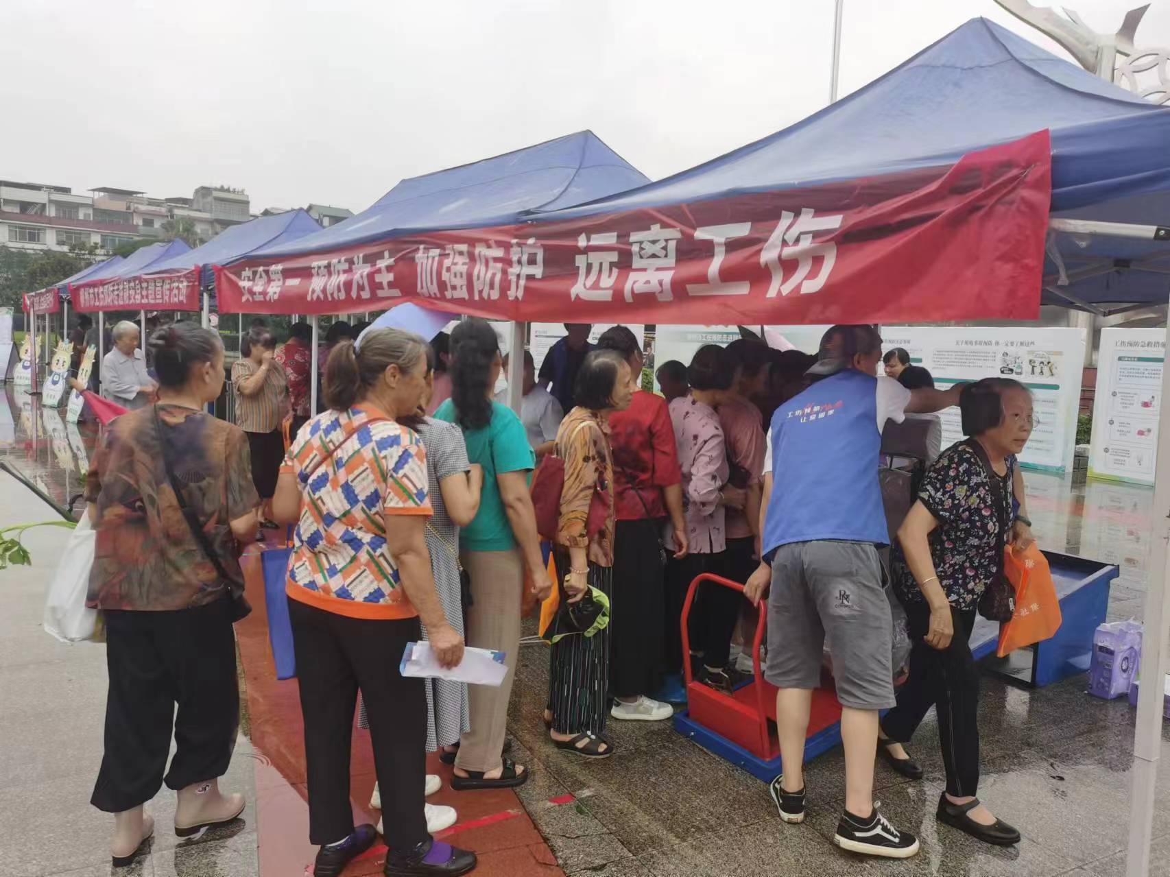 为进一步强化企业和劳动者的工伤预防意识,6月24日,由柳州市人力资源和社会保障局主办的“工伤预防进万家,点亮产业平安灯”主题宣传活动在融安县广场火热开展。活动通过“互动体验+知识普及”创新模式,设置知识问答、实操体验、政策宣讲等多元环节,为群众送上实用的工伤防护“安全课”。