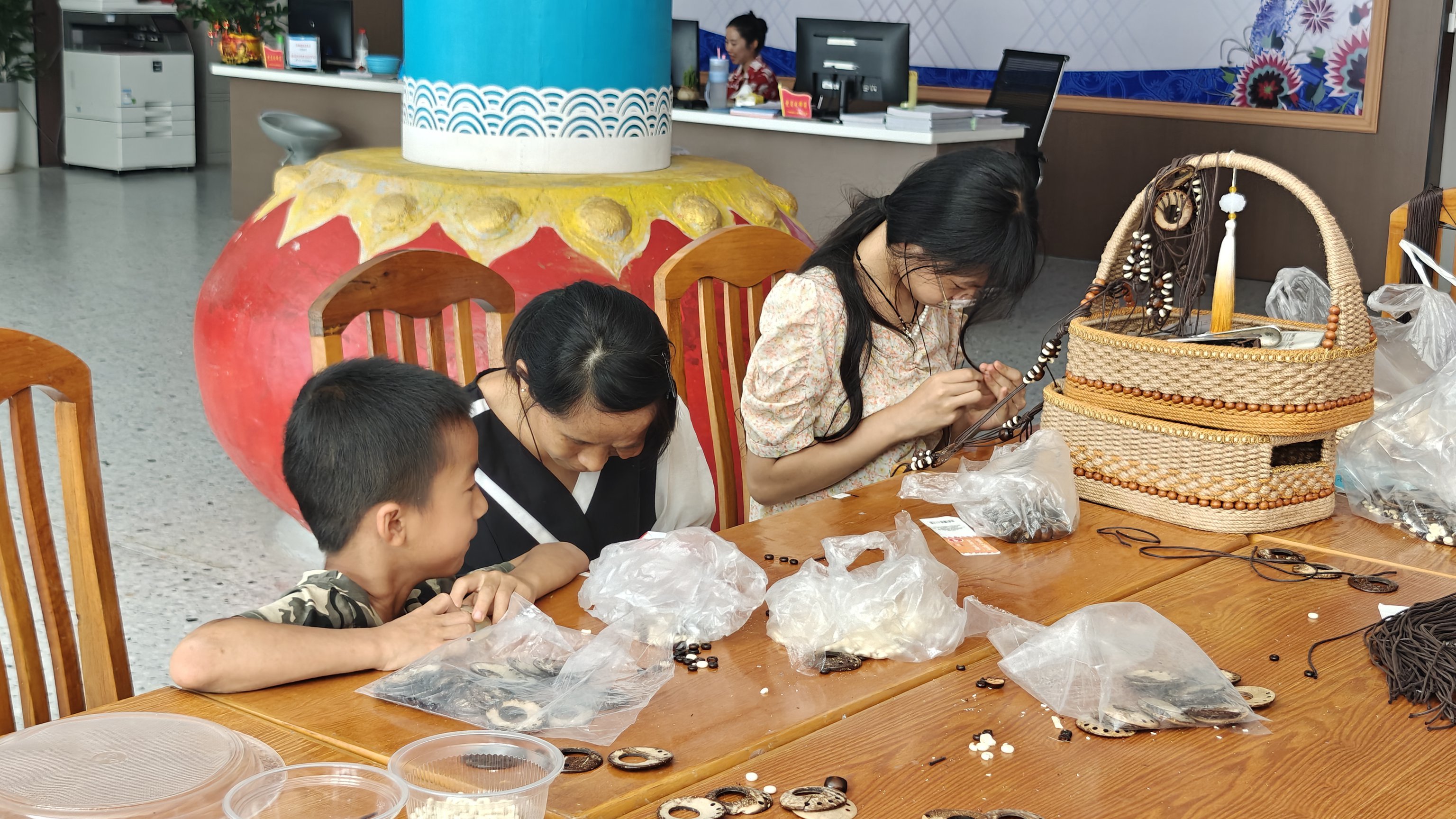 零工市场还为残疾人等特殊群体提供暖心服务。融水人社部门联合零工市场开展针对性培训,为残疾人提供技能培训、就业指引、岗位推荐及争议处理等一站式服务,切实提升他们的就业竞争力。易地搬迁群众陈菊芳对此深有感触:“我身体不太好,外出找工作难,还要照顾家里。零工市场给了我们更多打零工的机会。”暑假期间,她带着女儿和儿子一起在零工市场工作室做手工串珠,安心工作。