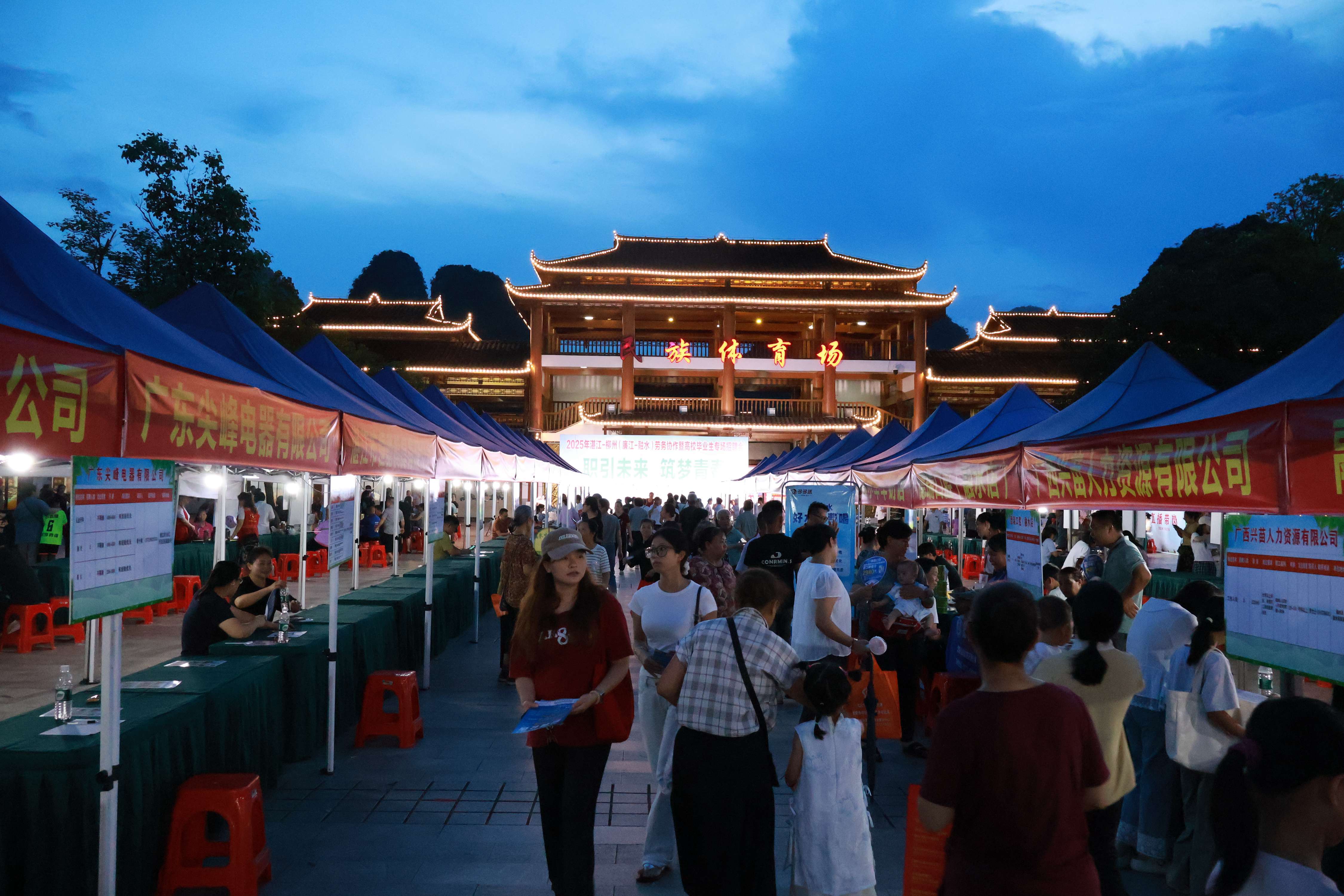 7月23日、24日晚,廉江市人力资源和社会保障局、融水苗族自治县人力资源和社会保障局和融水苗族自治县粤桂协作办公室联合主办的主题为“职引未来 筑梦青春”2025年湛江-柳州(廉江-融水)劳务协作暨高校毕业生专场招聘会分别在县民族体育公园和老君洞寿星广场热闹举办,把求职柜台搬到了烟火最旺处,为企业和求职者搭建“双向奔赴”平台。