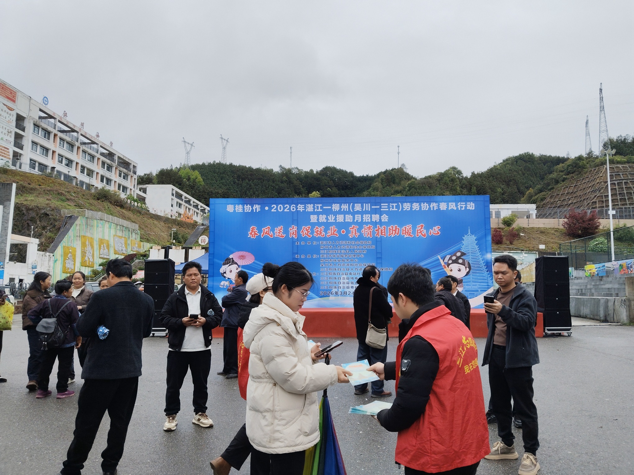 为深入推进东西部劳务协作,搭建粤桂两地用工对接桥梁,帮助重点群体实现更高质量就业,3月24日,由湛江市人力资源和社会保障局、柳州市人力资源和社会保障局、柳州市三江县人民政府联合主办的“粤桂协作·2026年湛江—柳州(吴川—三江)劳务协作春风行动暨就业援助月招聘会”在三江南站成功举办。此次招聘会聚焦供需精准对接,既是粤桂劳务协作的生动实践,也为两地就业工作高质量发展注入新动能。
