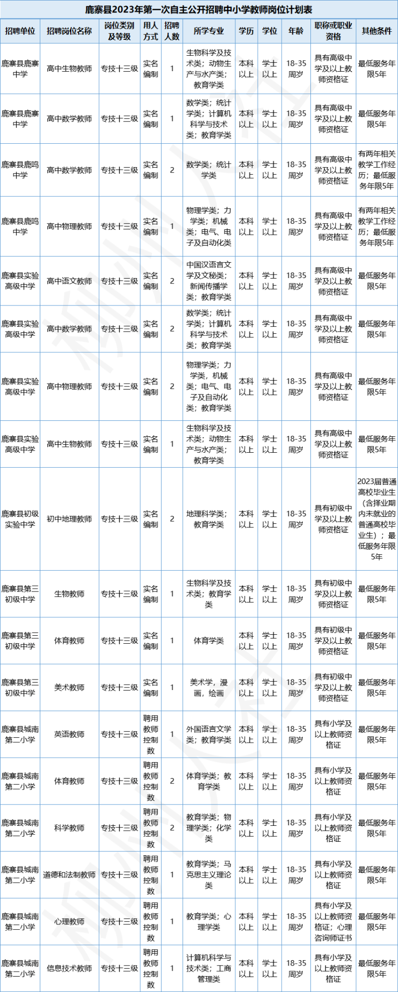 鹿寨县6所中小学招聘教师25人,其中实名编制17人,聘用教师控制数8人,详见下图: