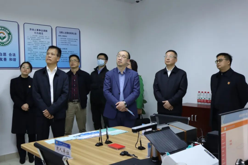 调研组先后来到柳州市劳动人事争议仲裁院、阳和工业新区劳动争议人民调解委员会进行实地考察,了解市仲裁院及调解中心建设和运行情况、“互联网+调解仲裁”信息化智能化建设及劳动人事争议调解仲裁案件处理情况,通过观看宣传片、实操演示,了解阳和“人社+法院”、“阳和劳动维权‘一站式’平台”等基层调解组织的创新做法。