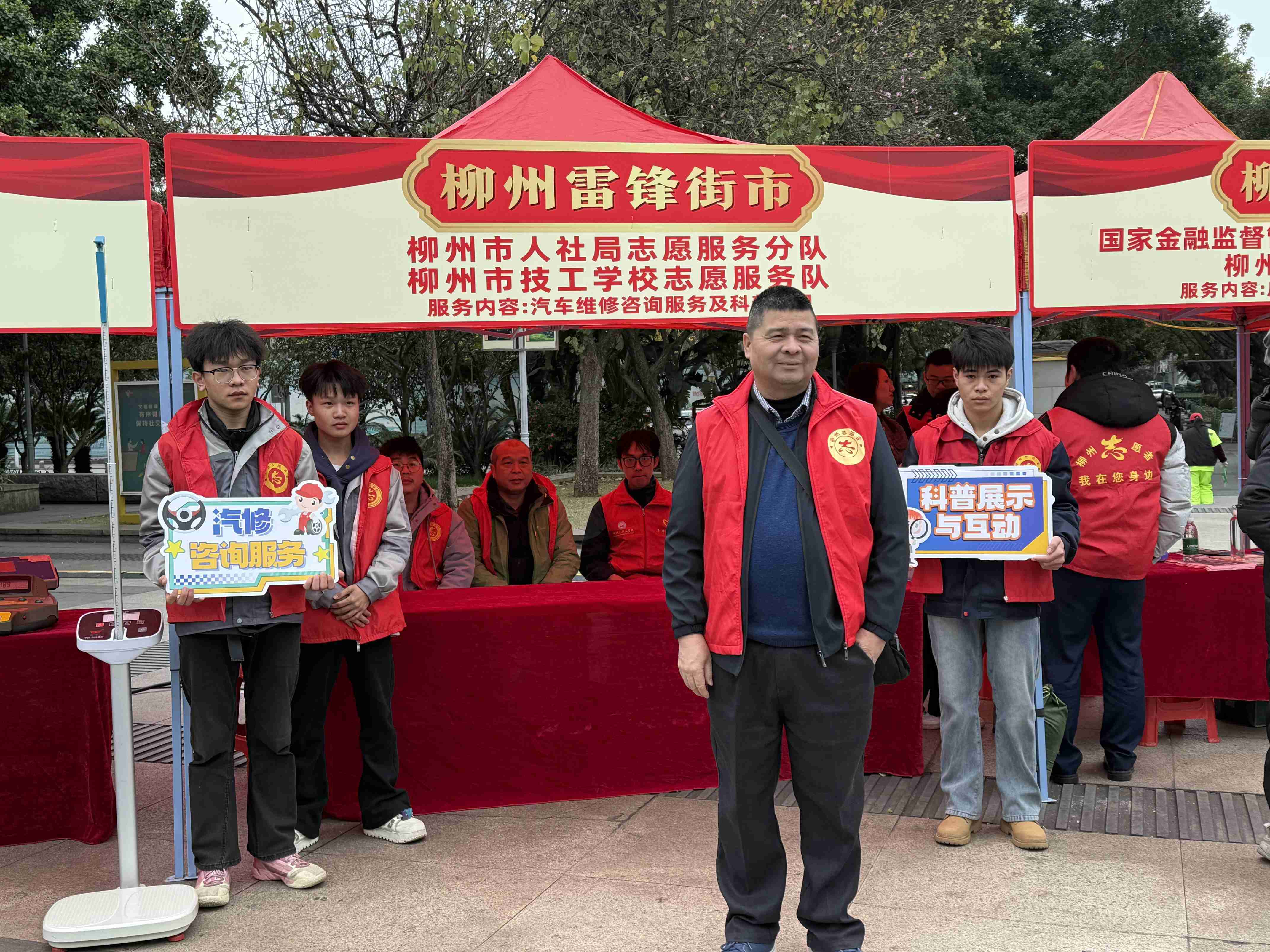 三月春风暖人心,雷锋精神永传承。为深入学习贯彻党的二十大精神,大力弘扬雷锋精神和“奉献、友爱、互助、进步”的志愿精神,3月5日,2025年柳州市志愿服务月暨“学雷锋·文明实践活动”“柳州雷锋街市”集中示范活动在人民广场隆重举行,来自全市各行各业的志愿者齐聚一堂,以实际行动弘扬雷锋精神,传递文明新风。柳州市人力资源和社会保障局志愿服务分队、柳州市技工学校志愿服务队参加活动。