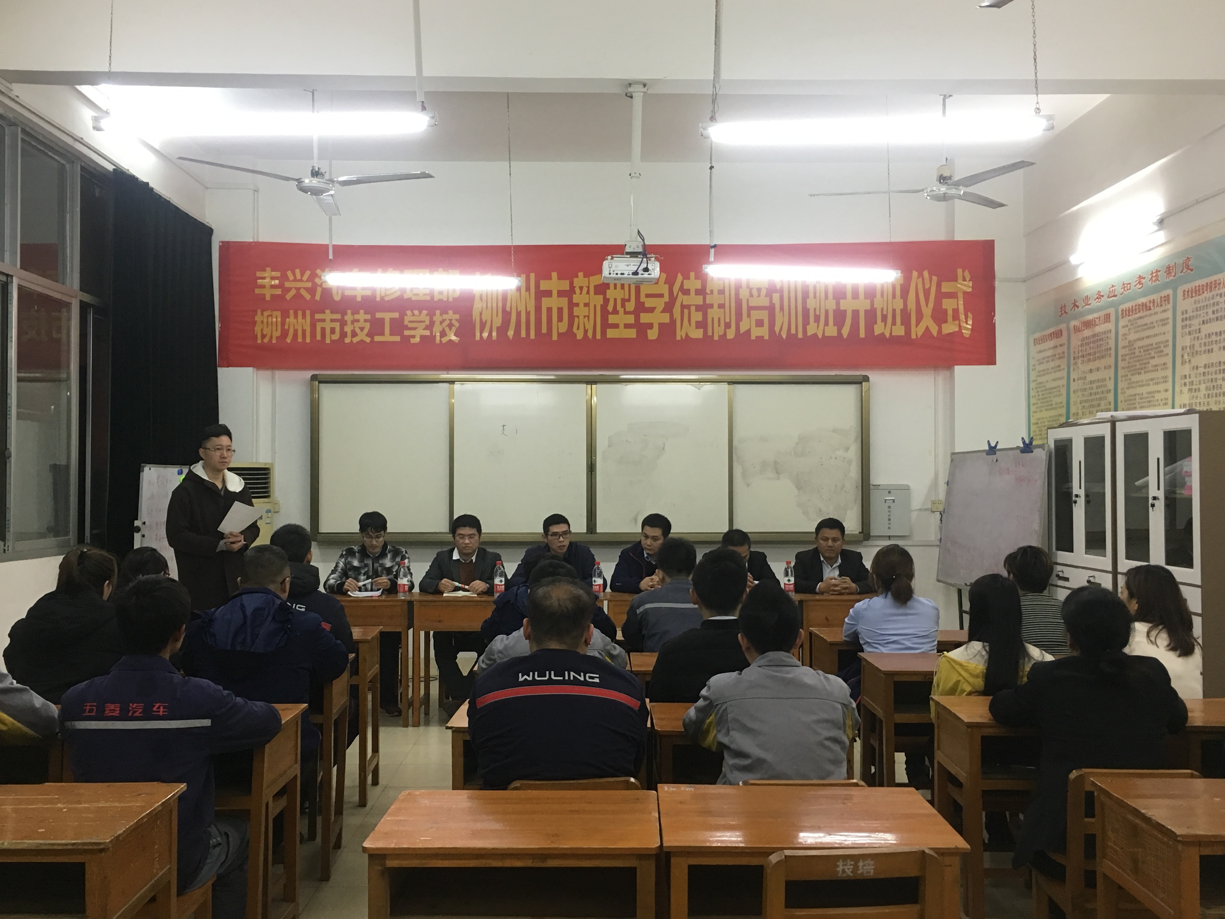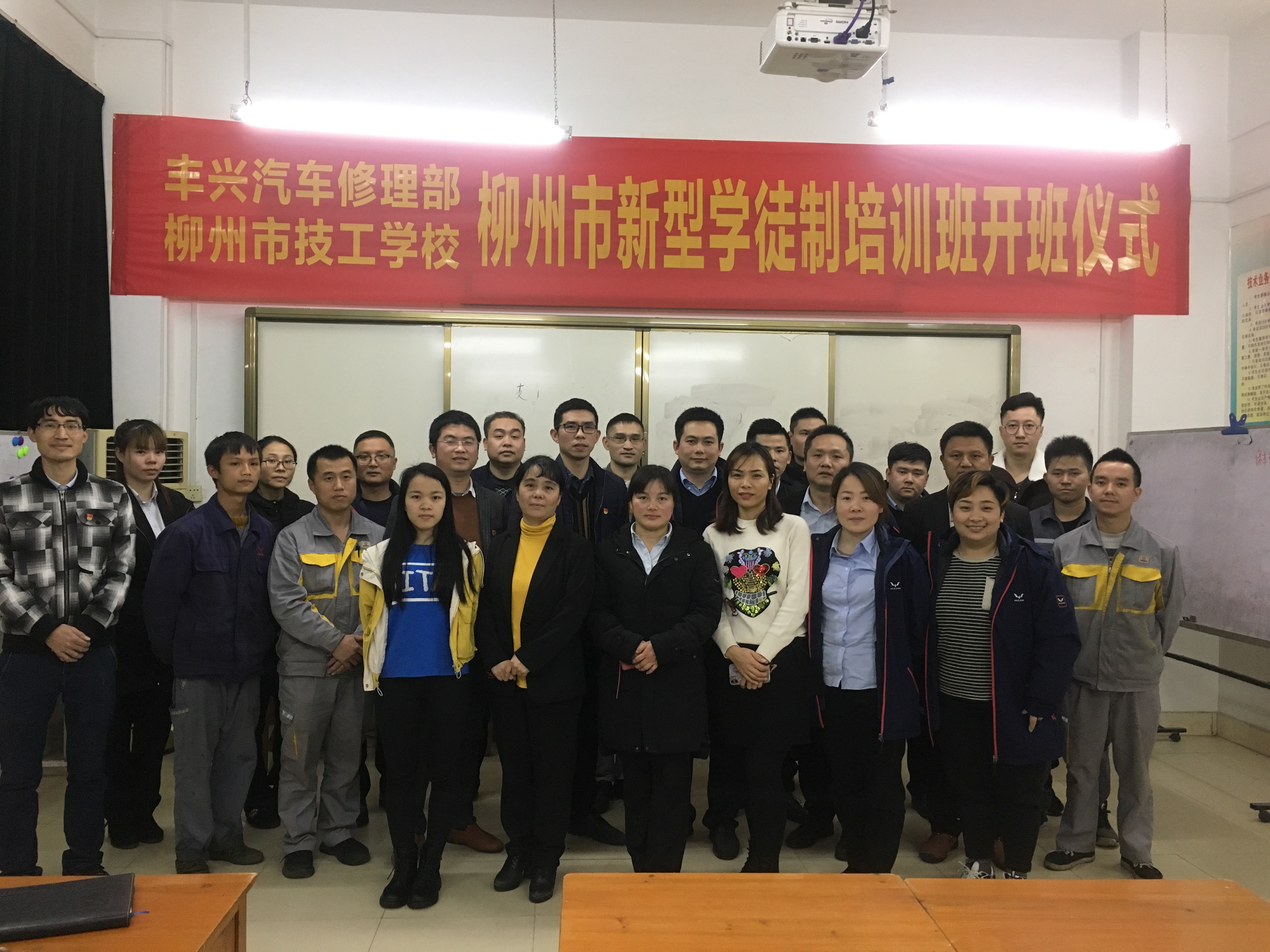 2020年12月28日,丰兴汽车修理部与柳州市技工学校共同开办的企业新型学徒制班开班仪式在柳州市技工学校燎原校区创业培训教室圆满举行。