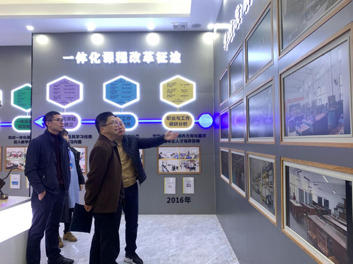 林局长一行首先参观了学校革新校区实训基地,了解学校一体化课程改革、设施建设、师资力量和教学水平。