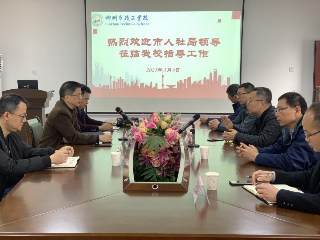 2021年3月4日上午,柳州市人力资源和社会保障局党组书记、局长林祖敏同志一行3人到我校调研指导工作。