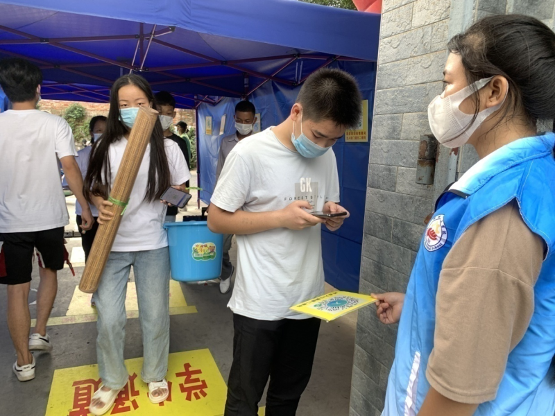 柳州市技工学校校门进行测量体温和二码联查