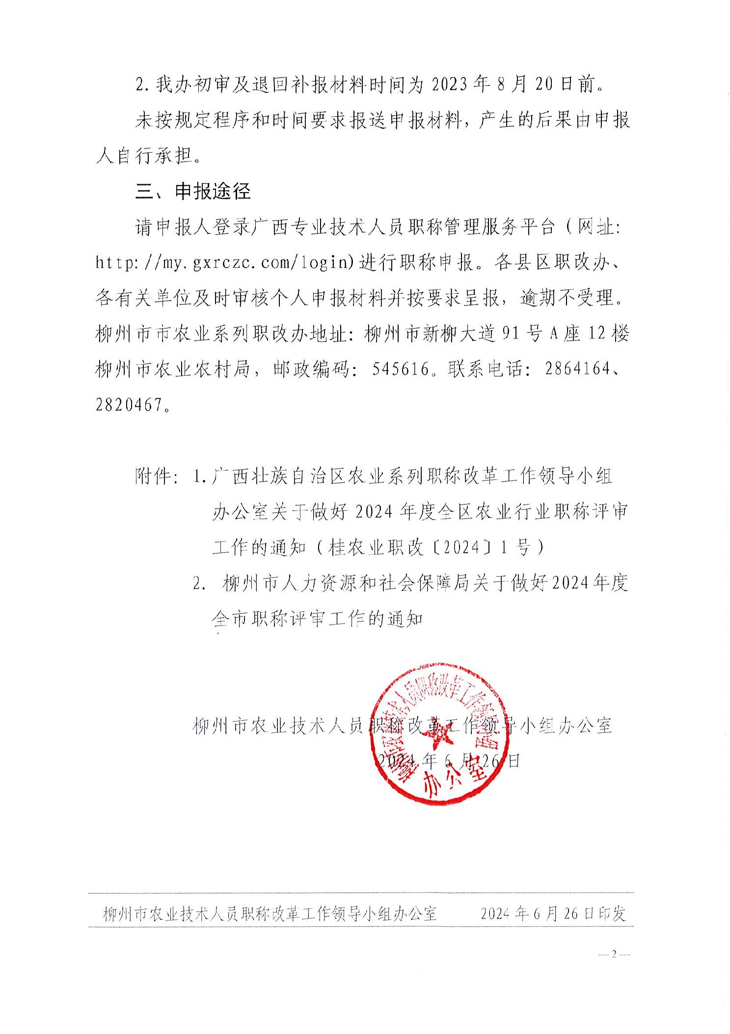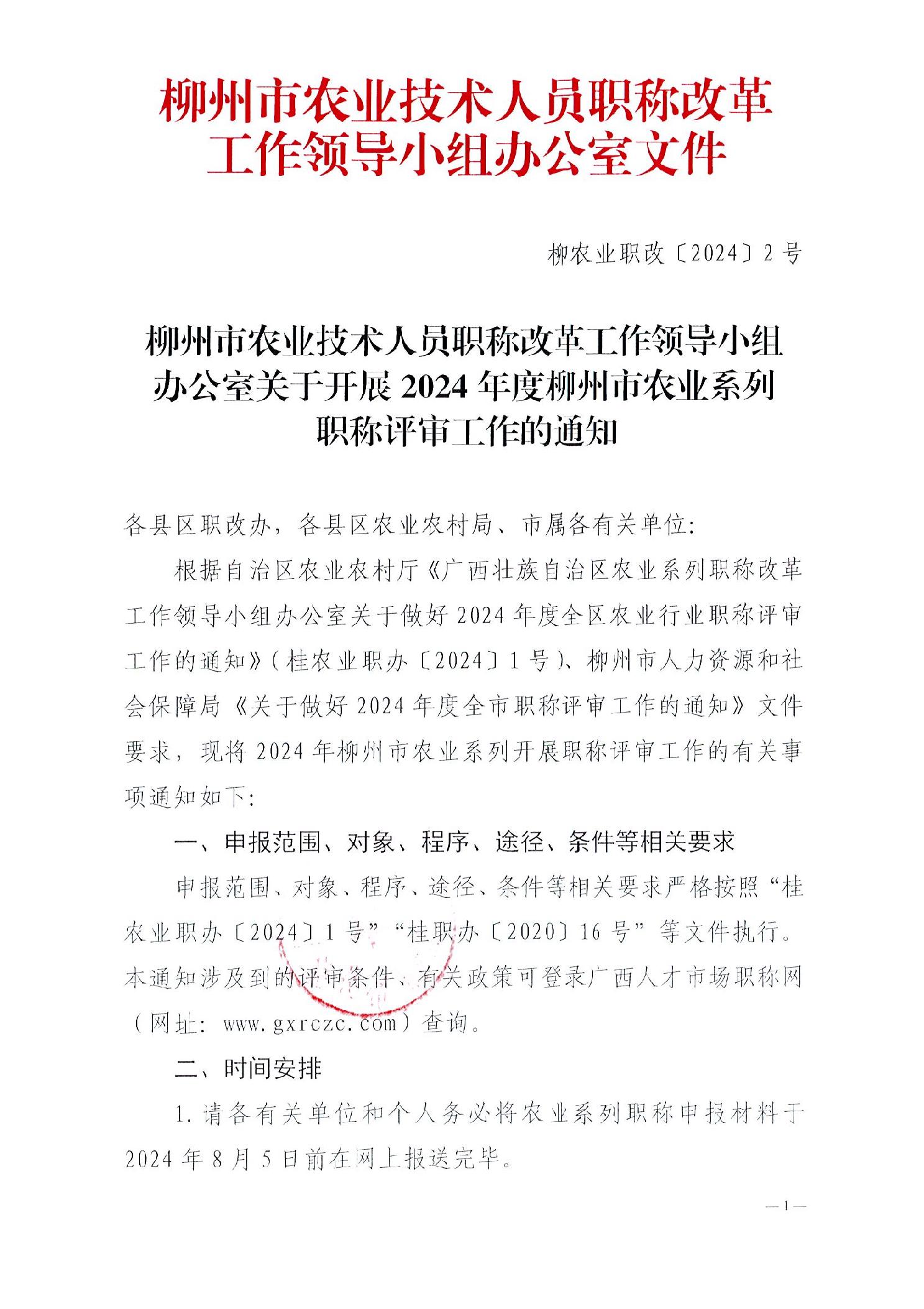 关于开展2024年度柳州市农业系列职称评审工作的通知