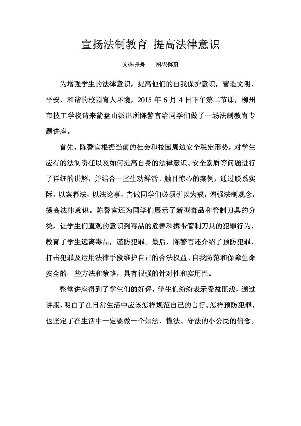 宣扬法制教育 增强法律意识