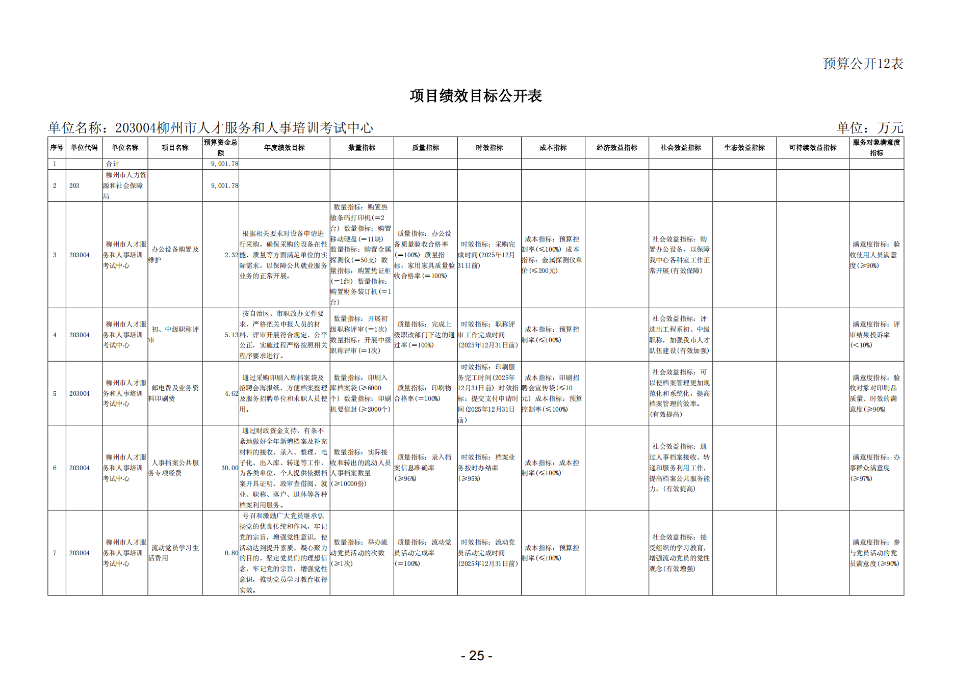 203004柳州市人才服务和人事培训考试中心2025年单位预算公开说明