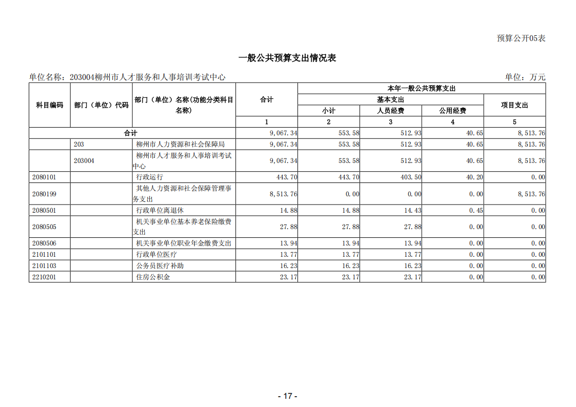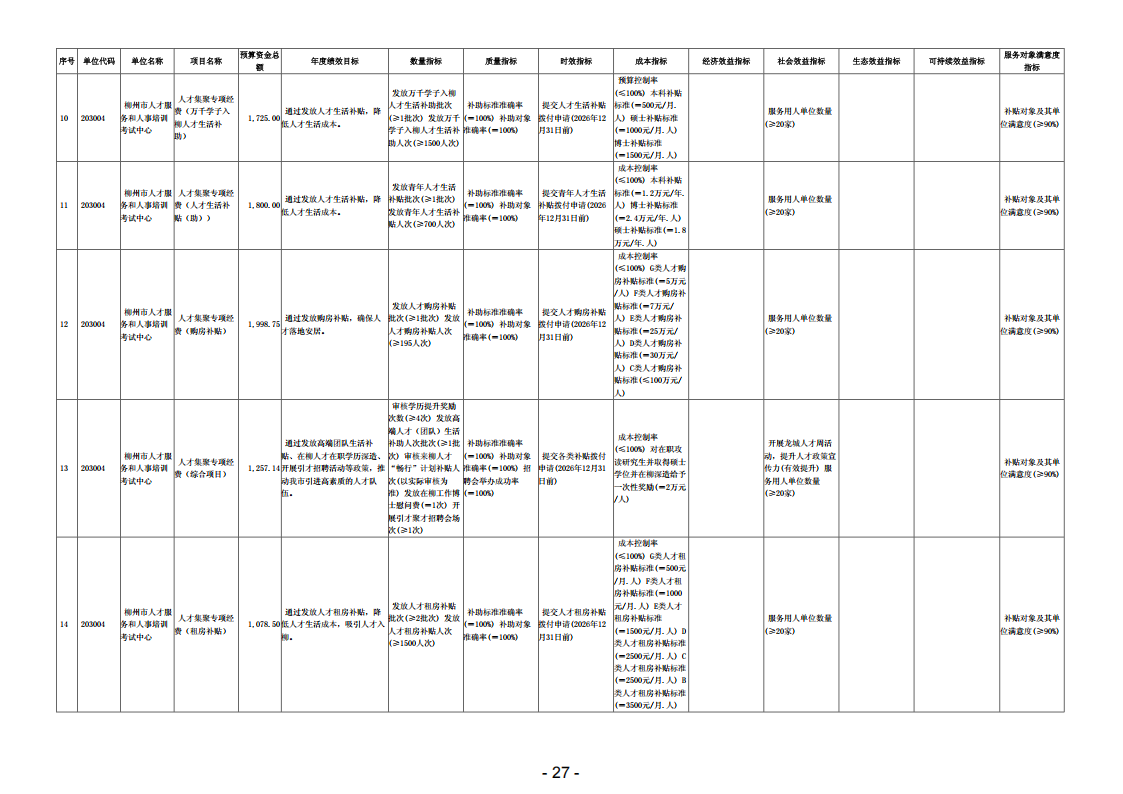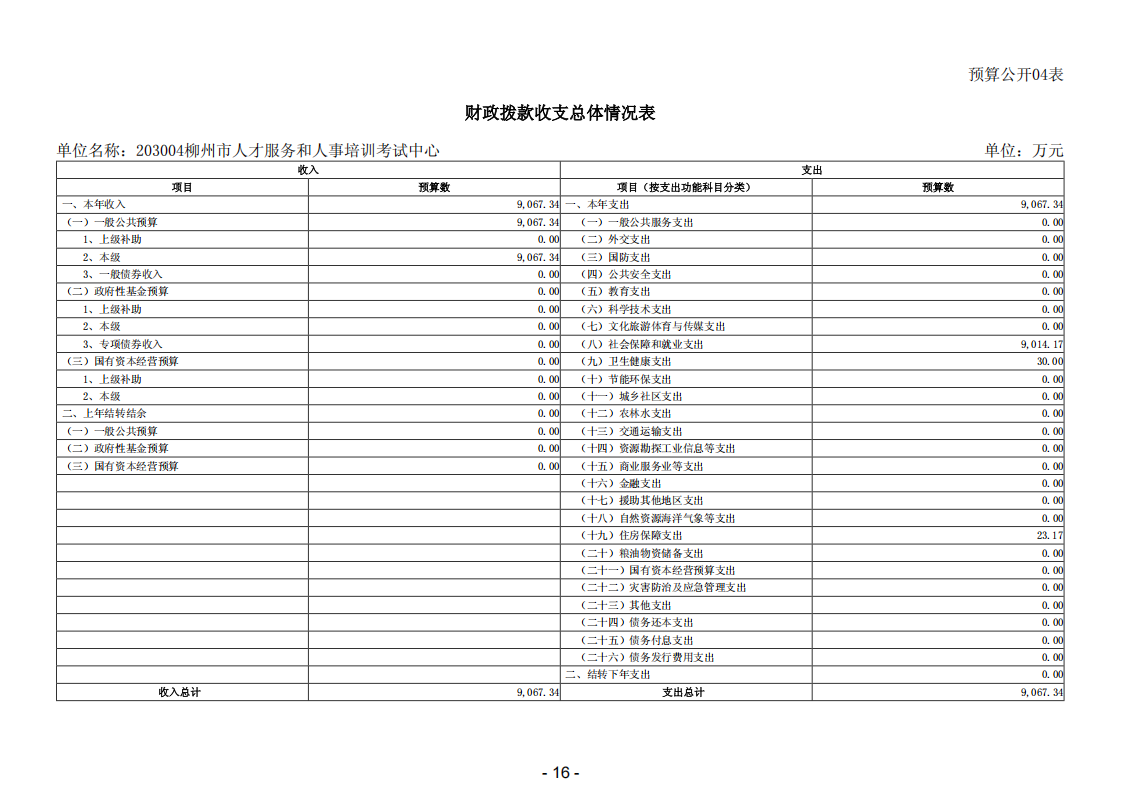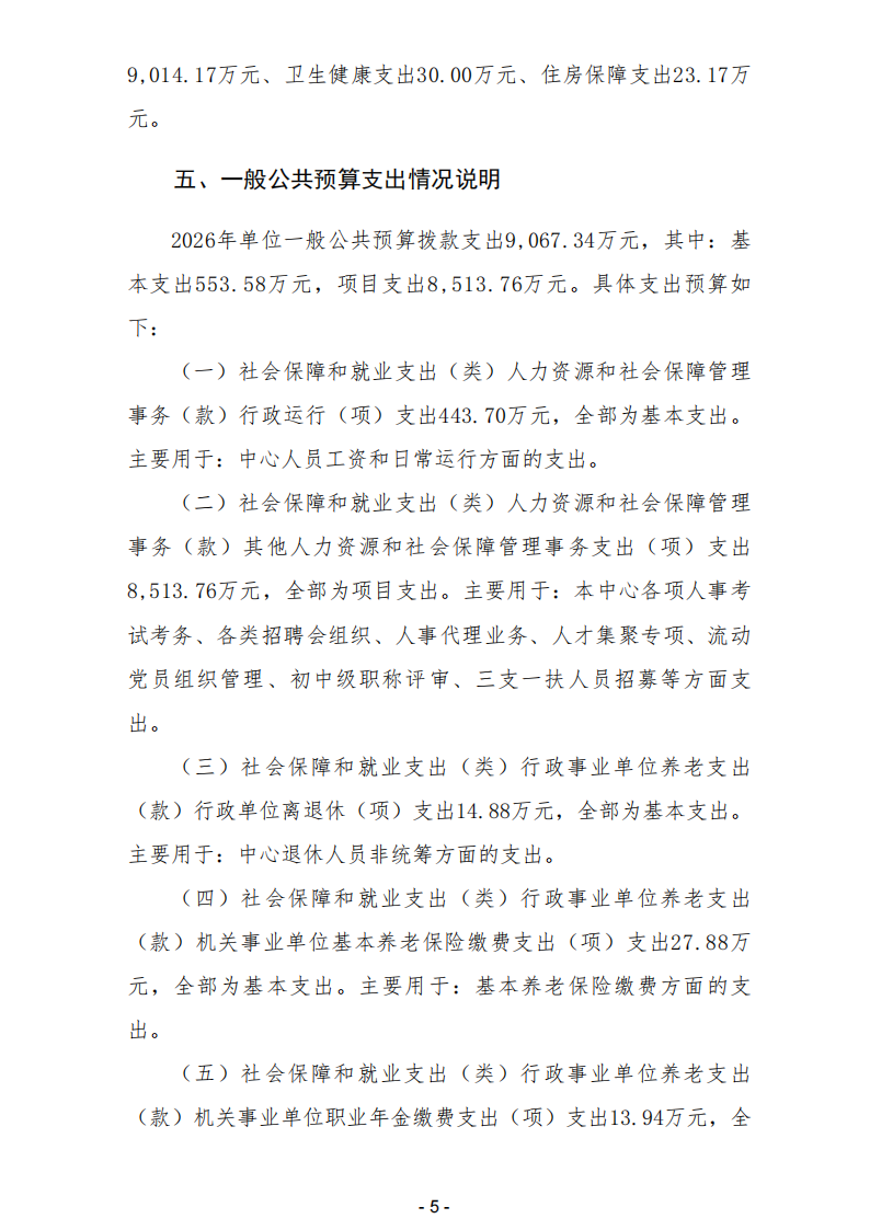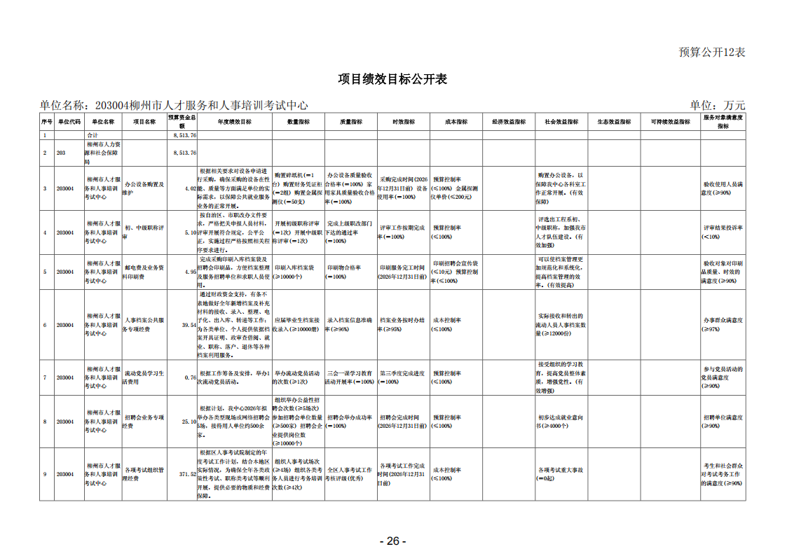 203004柳州市人才服务和人事培训考试中心2026年单位预算公开说明
