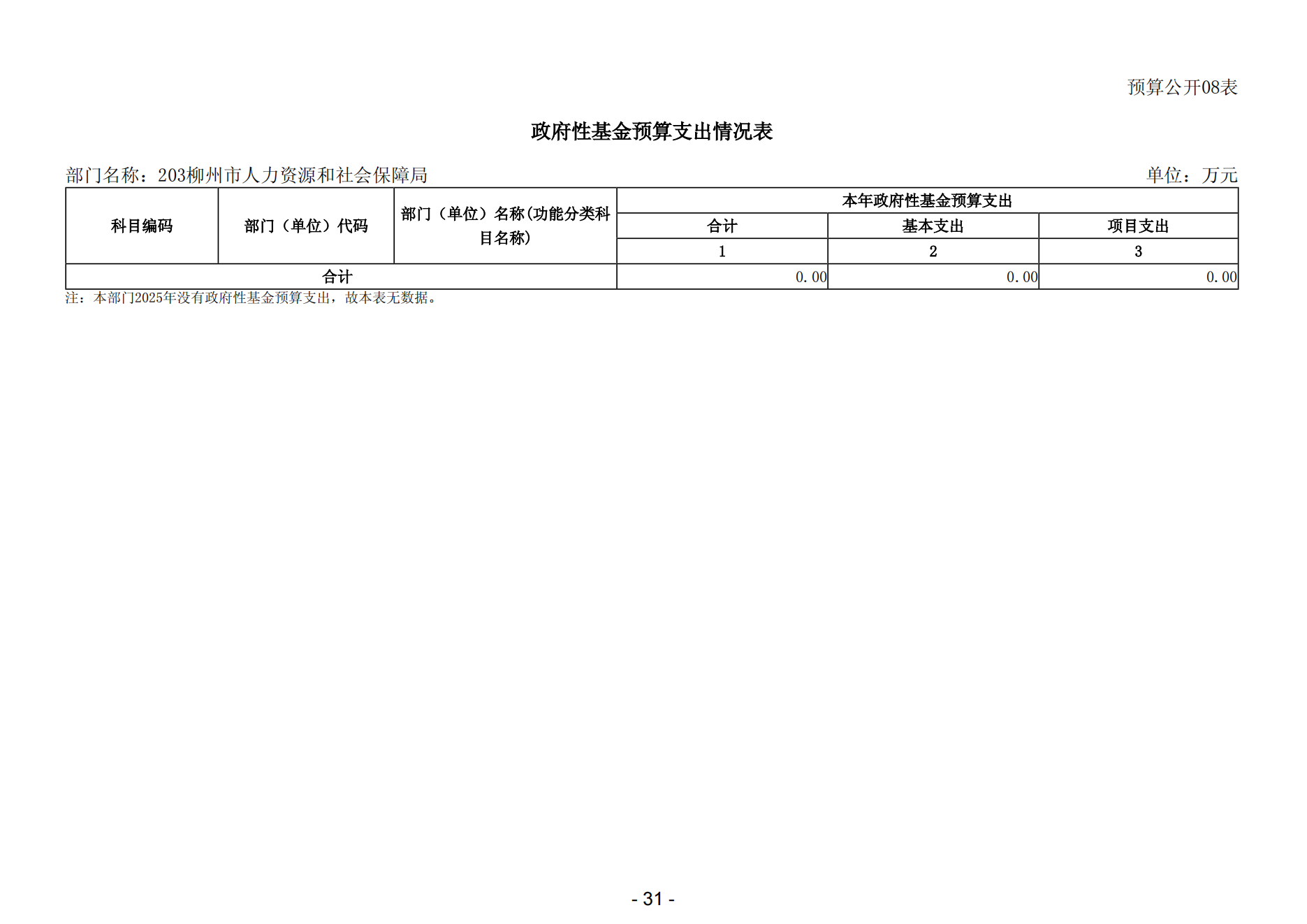 203柳州市人力资源和社会保障局2025年部门预算公开说明