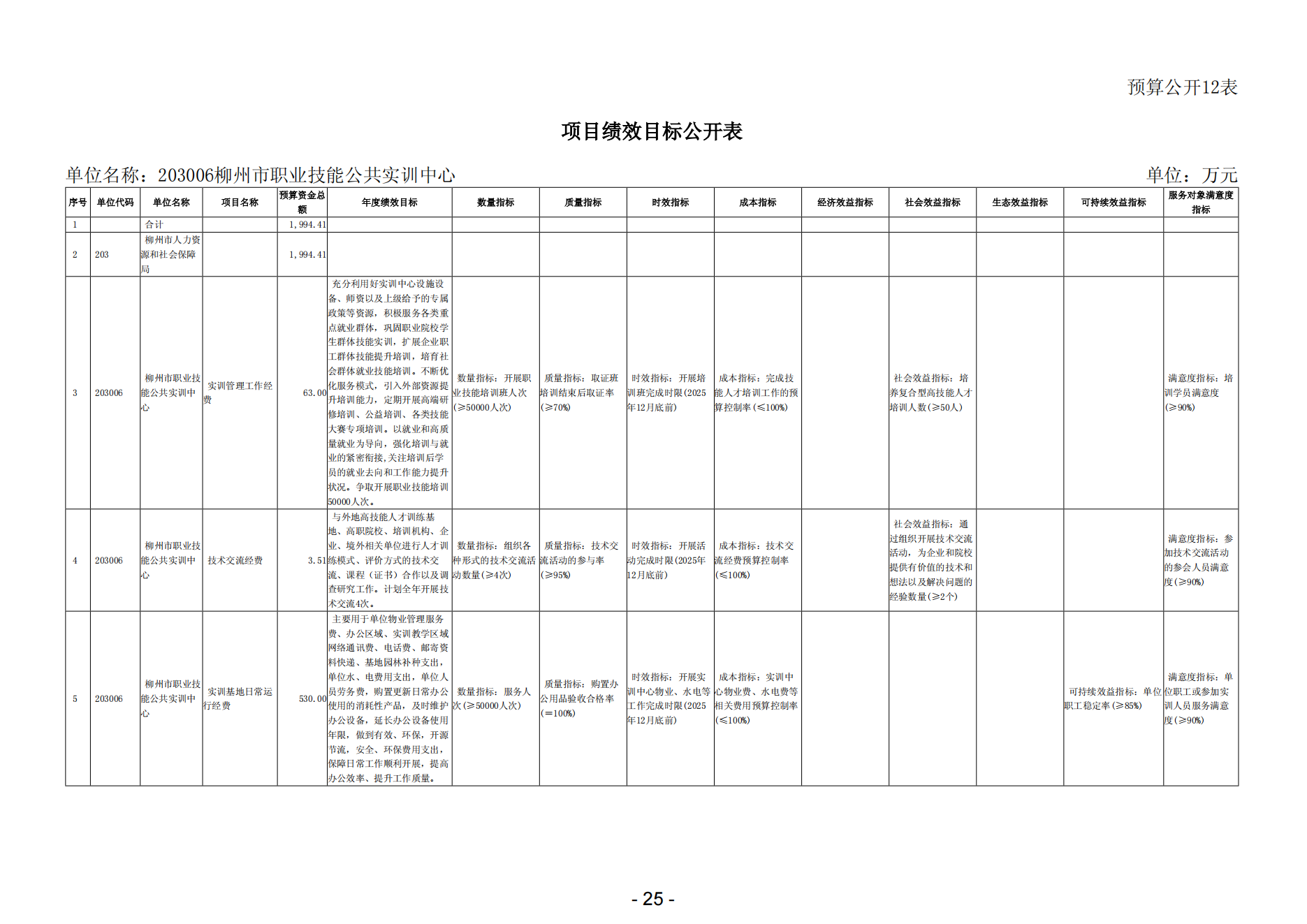 203006柳州市职业技能公共实训中心2025年单位预算公开说明