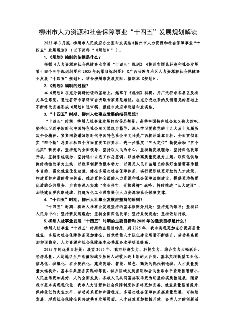 柳州市人力资源和社会保障事业“十四五”发展规划解读 .pdf