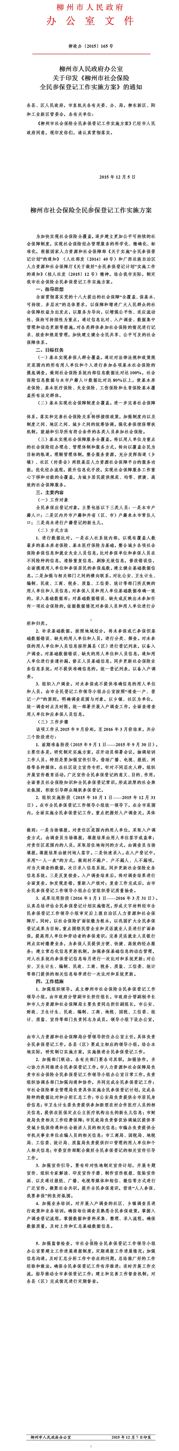 柳州市人民政府办公室关于印发《柳州市社会保险全民参保登记工作实施方案》的通知