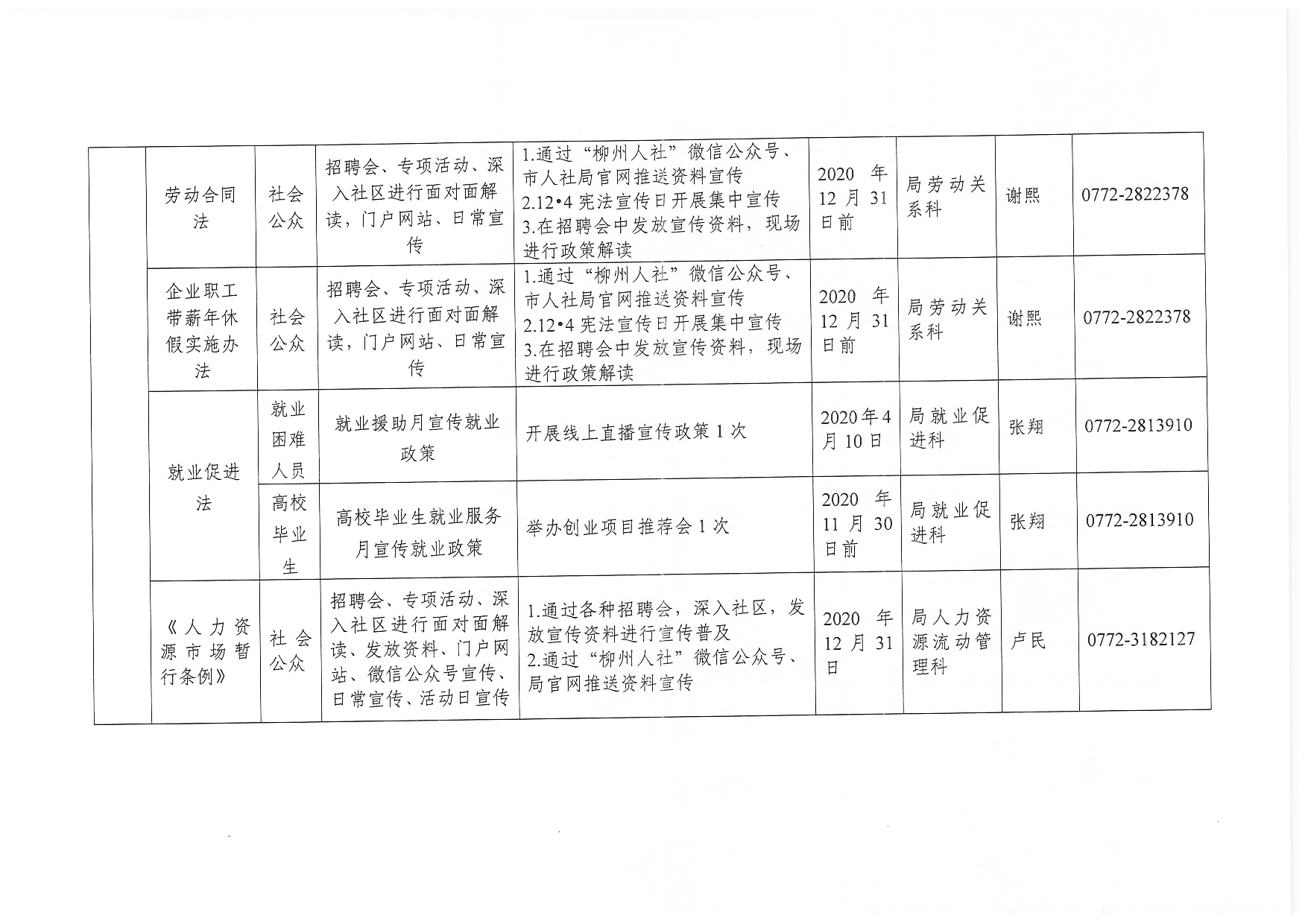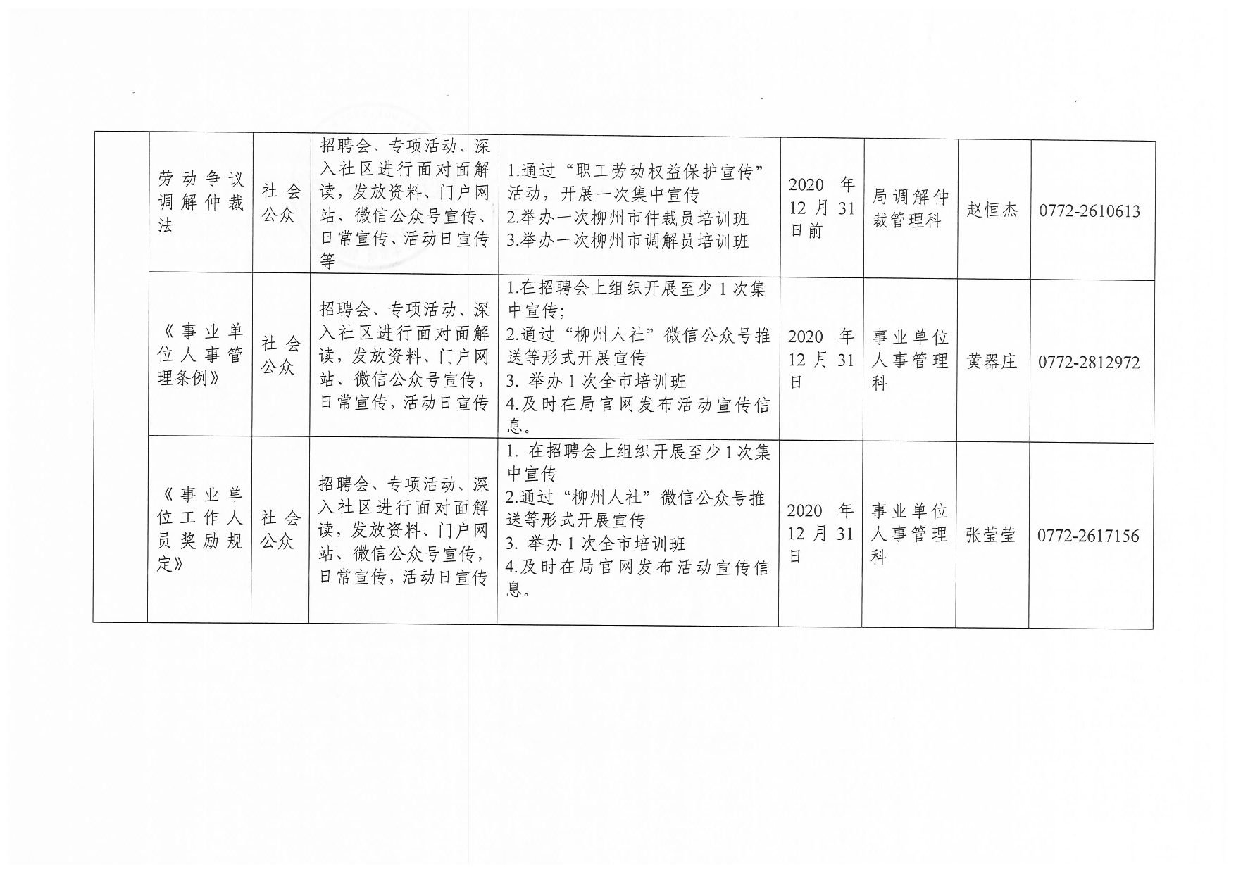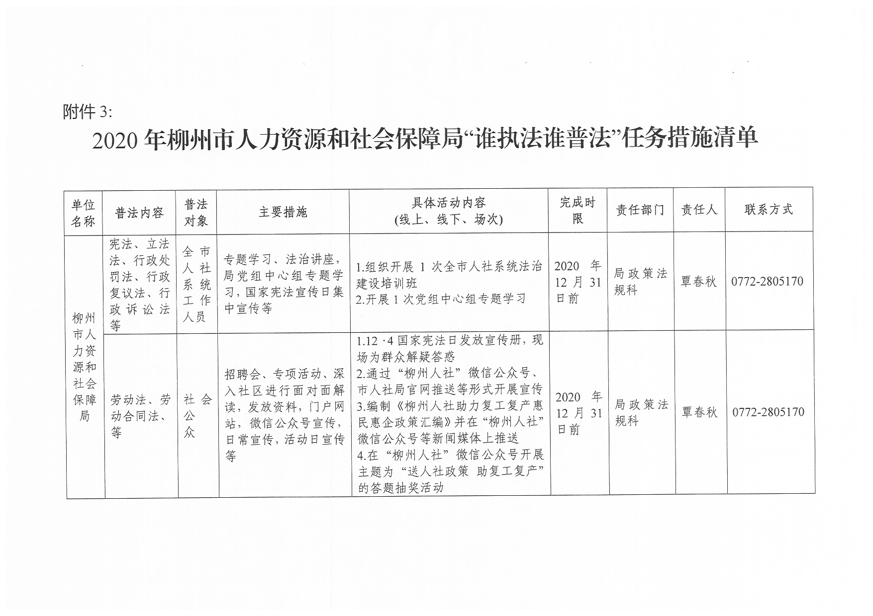 2020年柳州市人力资源和社会保障局“谁执法谁普法”任务措施清单