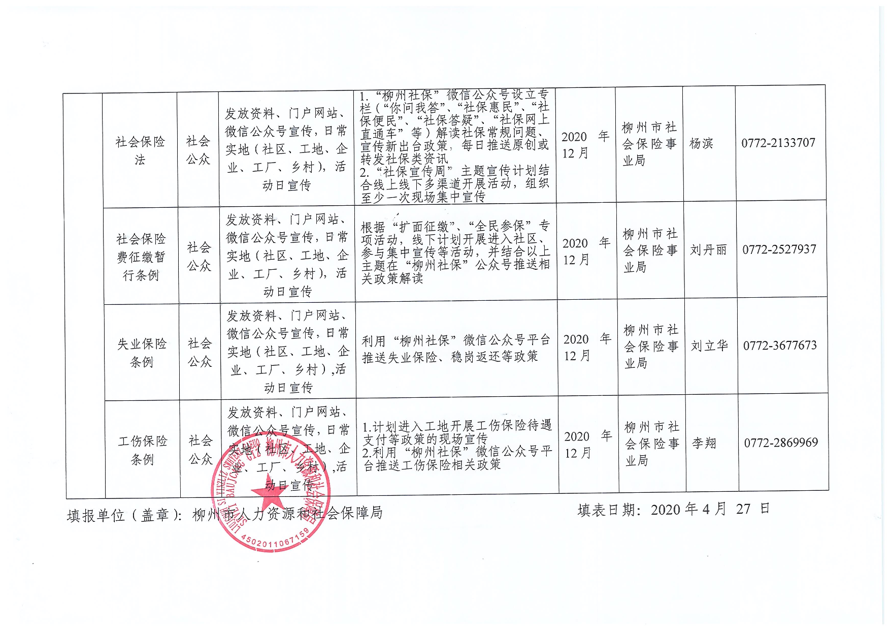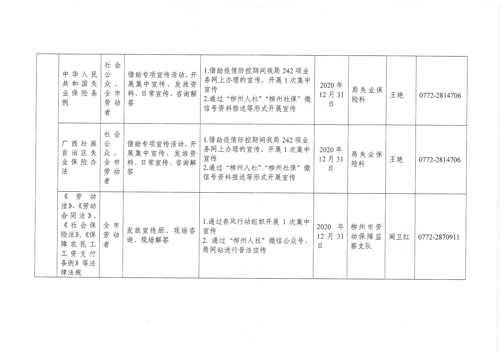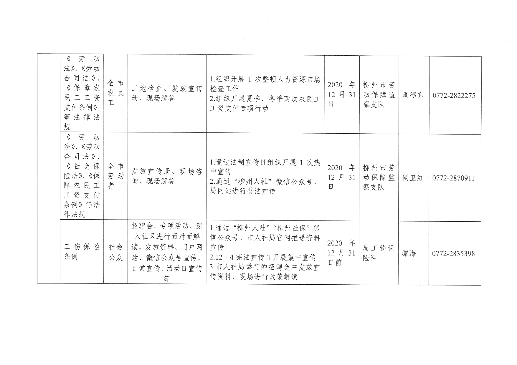 2020年柳州市人力资源和社会保障局“谁执法谁普法”任务措施清单
