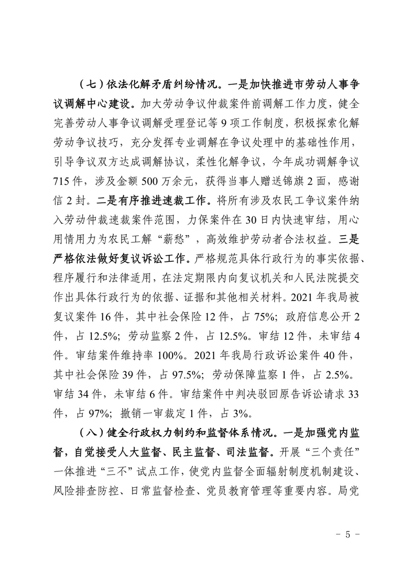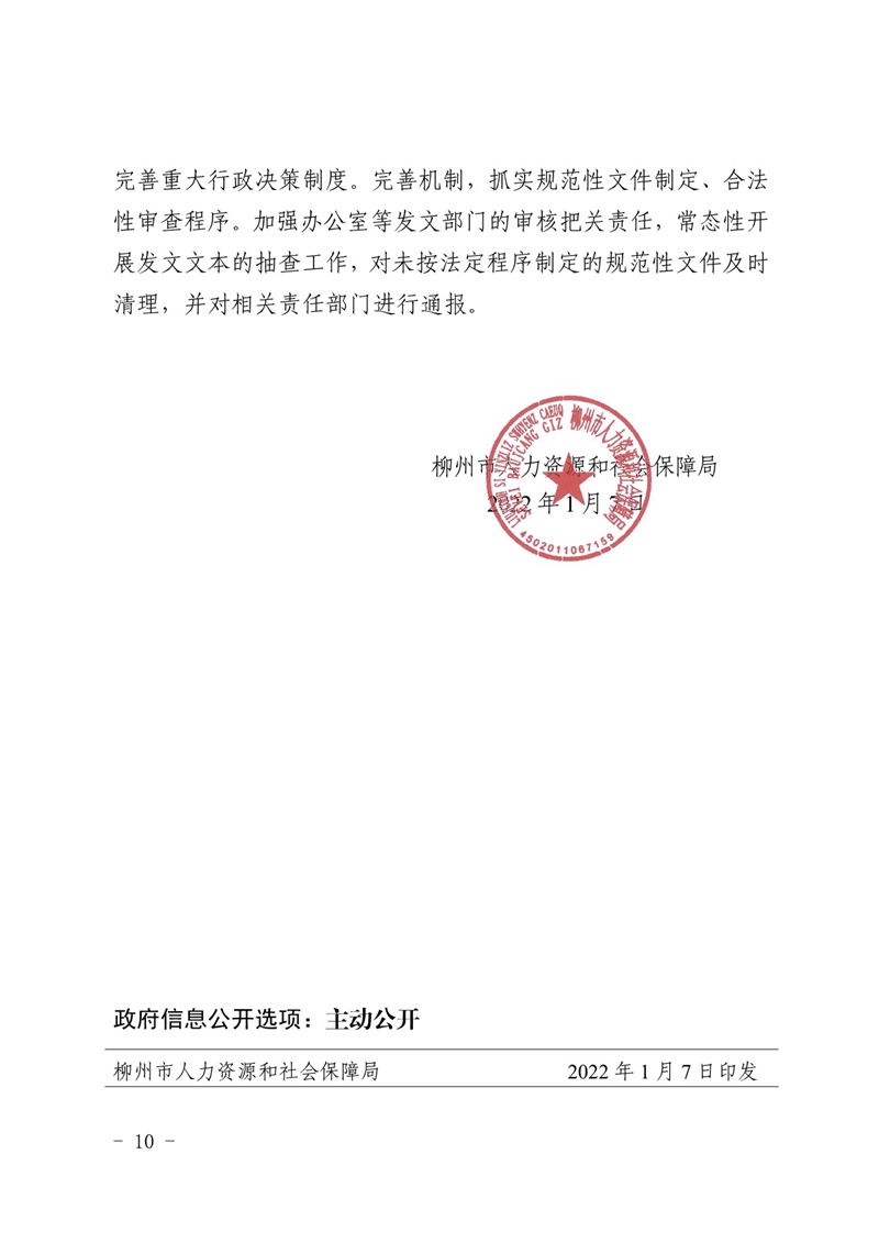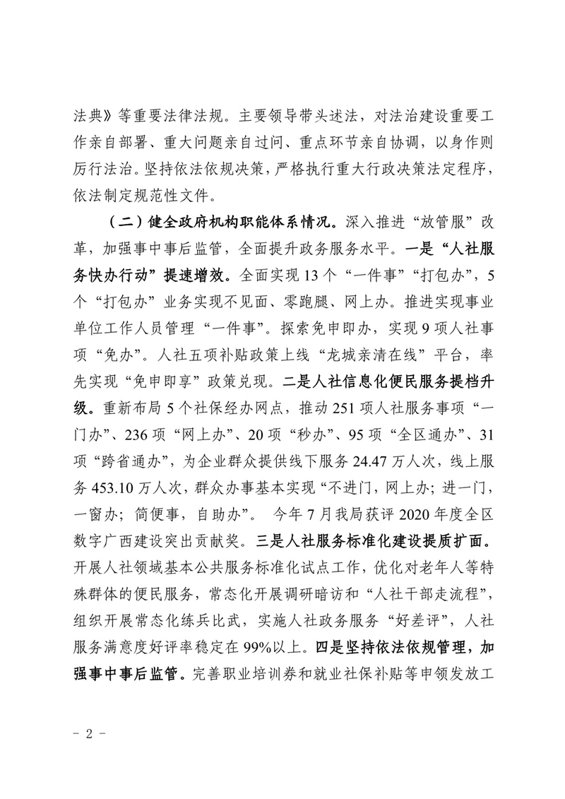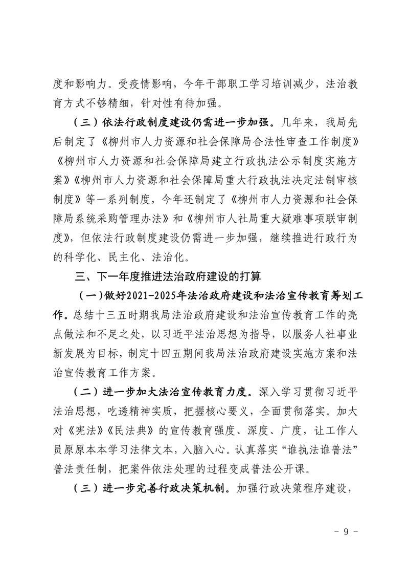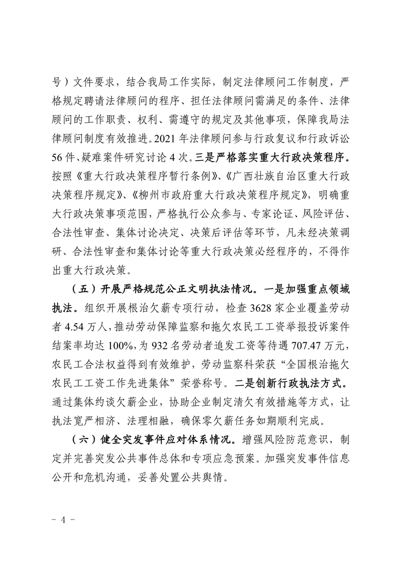 柳人社报〔2022〕3号 柳州市人力资源和社会保障局关于2021年度法治政府建设情况的报告