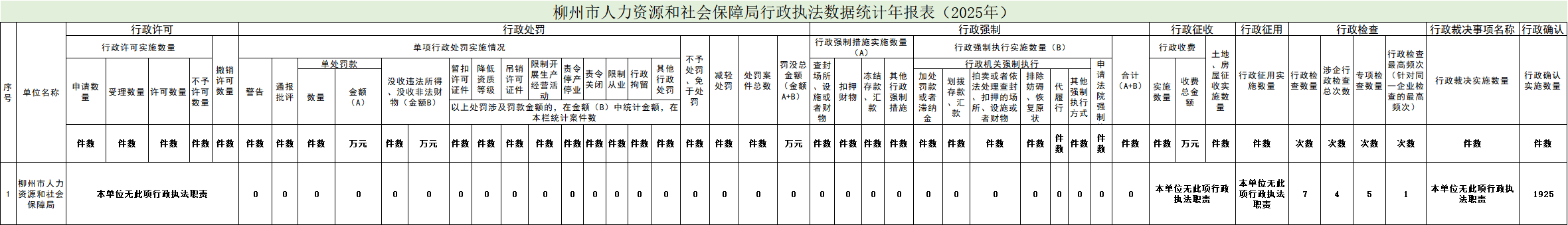柳州市人力资源和社会保障局行政执法数据统计年报表(2025年)