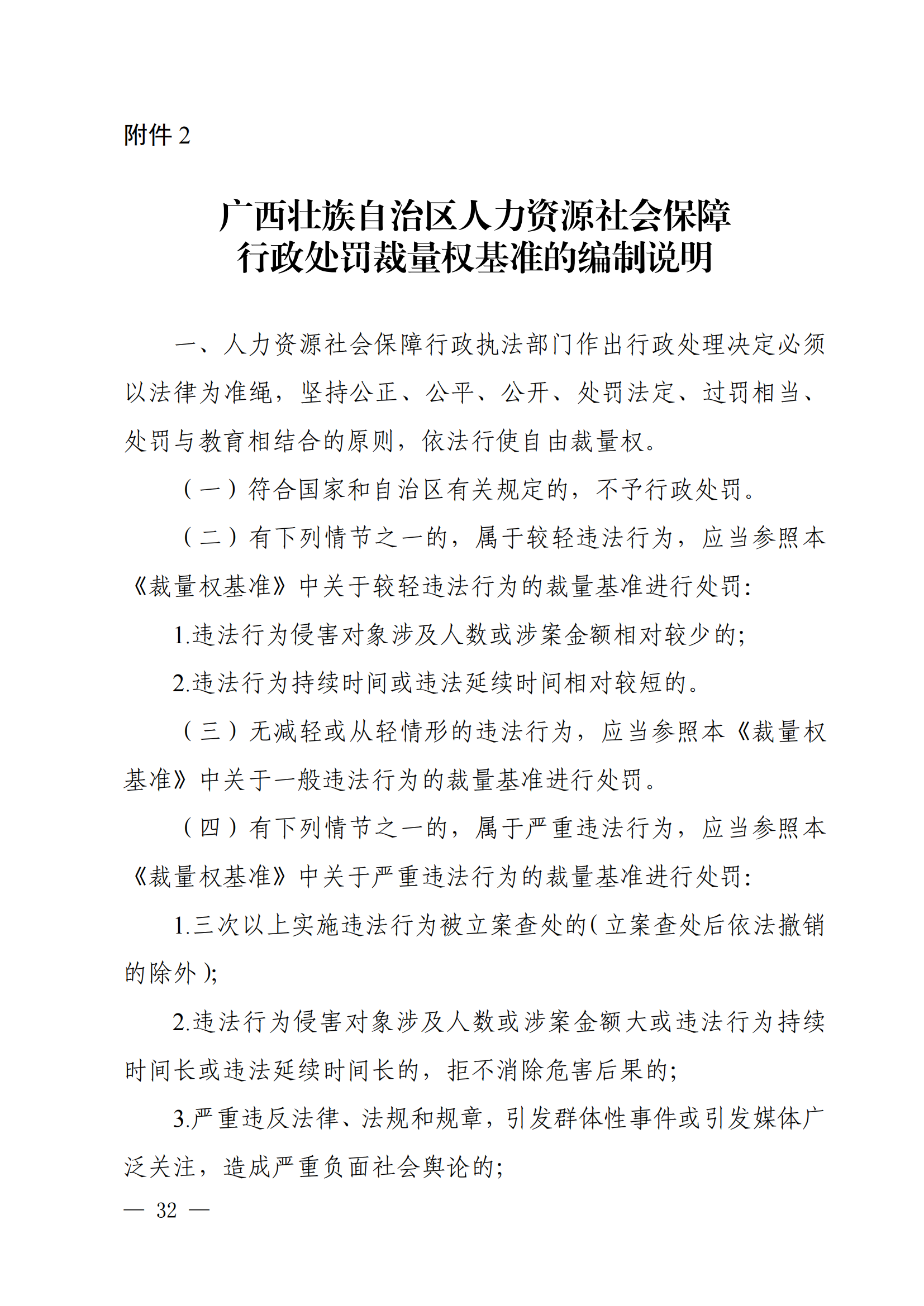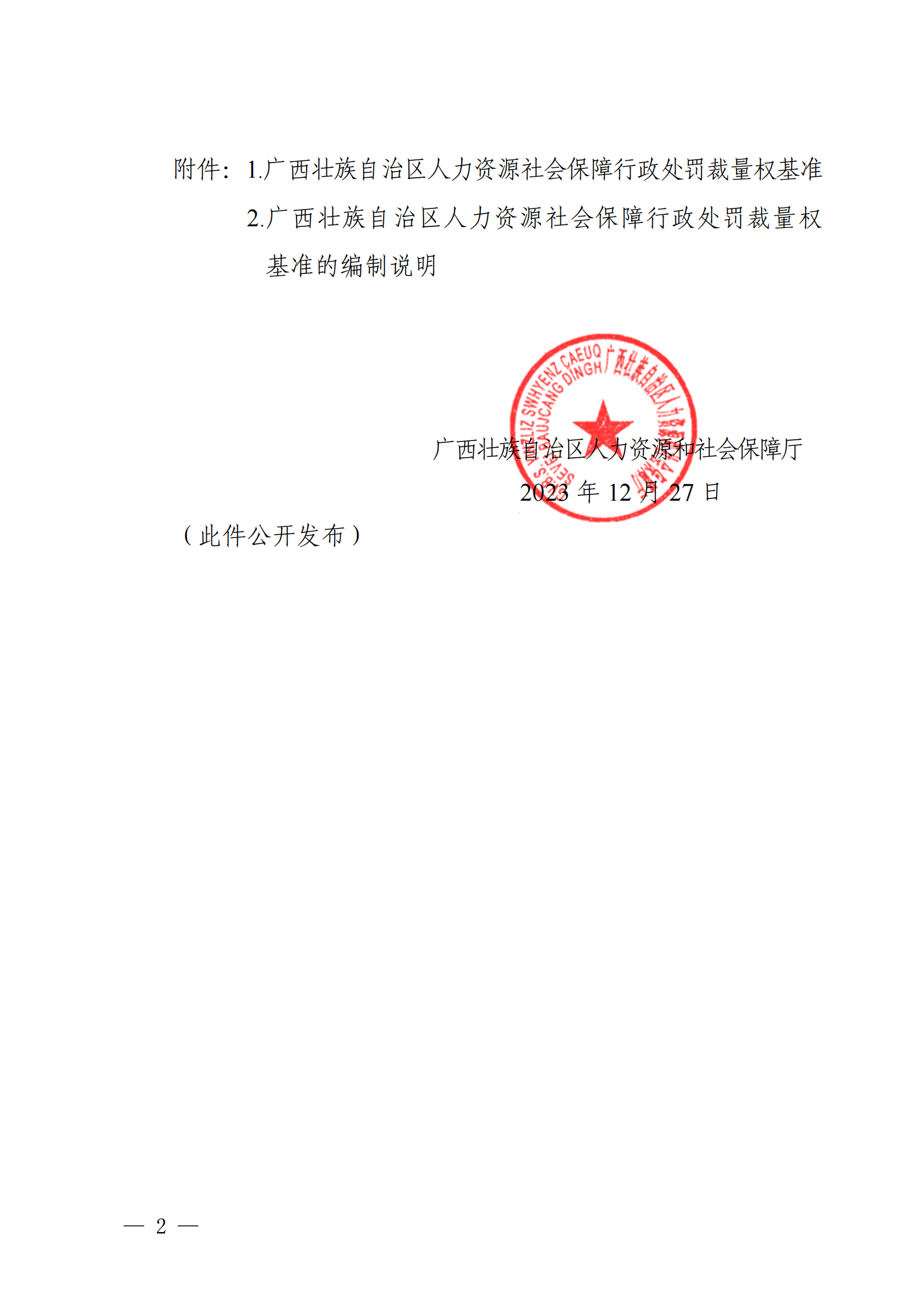 - 桂人社规〔2023〕4 号 广西壮族自治区人力资源和社会保障厅关于印发《广西壮族自治区人力资源社会保障行政处罚裁量权基准》的通知