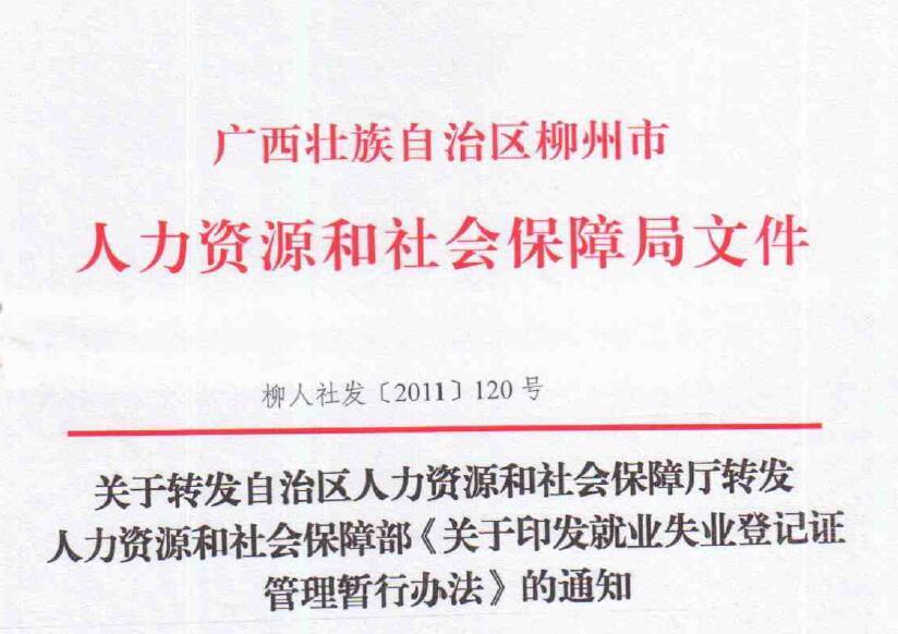 《关于转发自治区人力资源和社会保障厅转发人力资源和社会保障部关于印发就业失业登记证管理暂行办法的通知》(柳人社发[2011]120号)